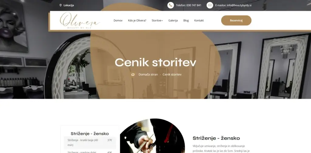 Po več kot 15 letih izkušenj v priznanih frizerskih salonih je Olivera naredila korak na samostojno pot. Pri tem je potrebovala spletno stran, ki bo gradila zaupanje, jasno predstavila njeno strokovnost ter strankam olajšala prvi stik z njenim salonom. Poskrbeli smo za sodobno spletno predstavitev, prilagojeno njenemu stilu in ciljni publiki.