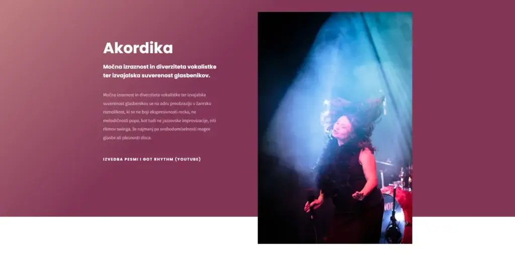 Glasbena skupina Akordika na glasbeni sceni uspešno deluje že več kot 15 let, njihova spletna stran pa temu žal ni več sledila. Stara stran je bila tehnično zastarela, postavljena v statičnem HTML-ju, brez možnosti enostavnega urejanja vsebine in brez sodobnega vizualnega vtisa.